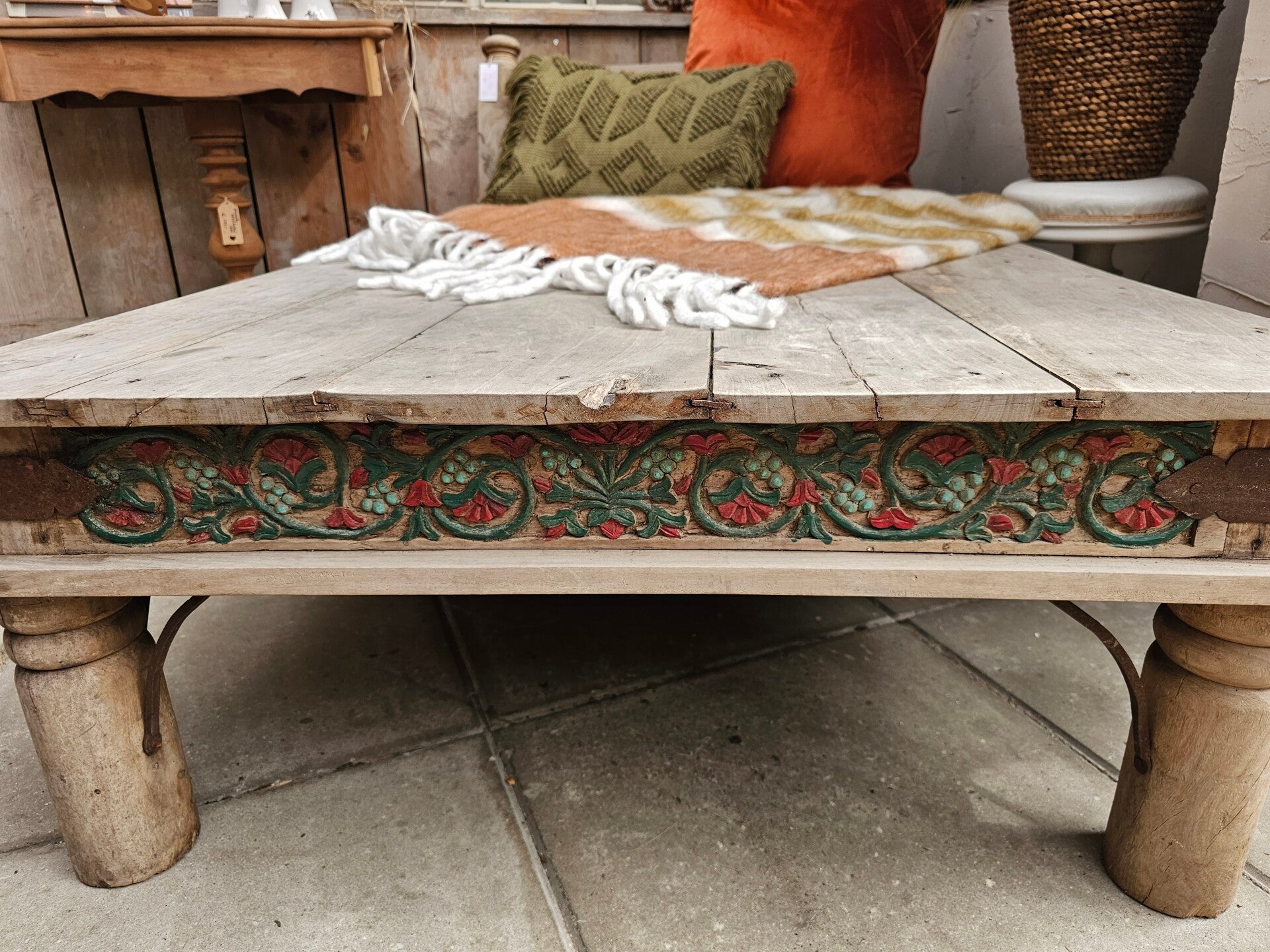 Geef je ruimte een vleugje verre oorden met dit authentieke Indiaas daybed. Handgemaakt van massief hout, met prachtig houtsnijwerk en een verweerde afwerking die verhalen vertelt.