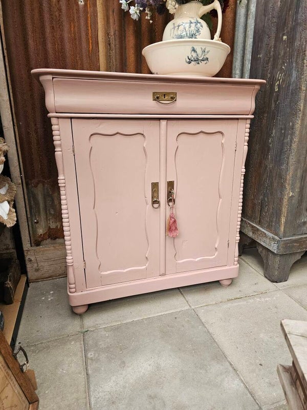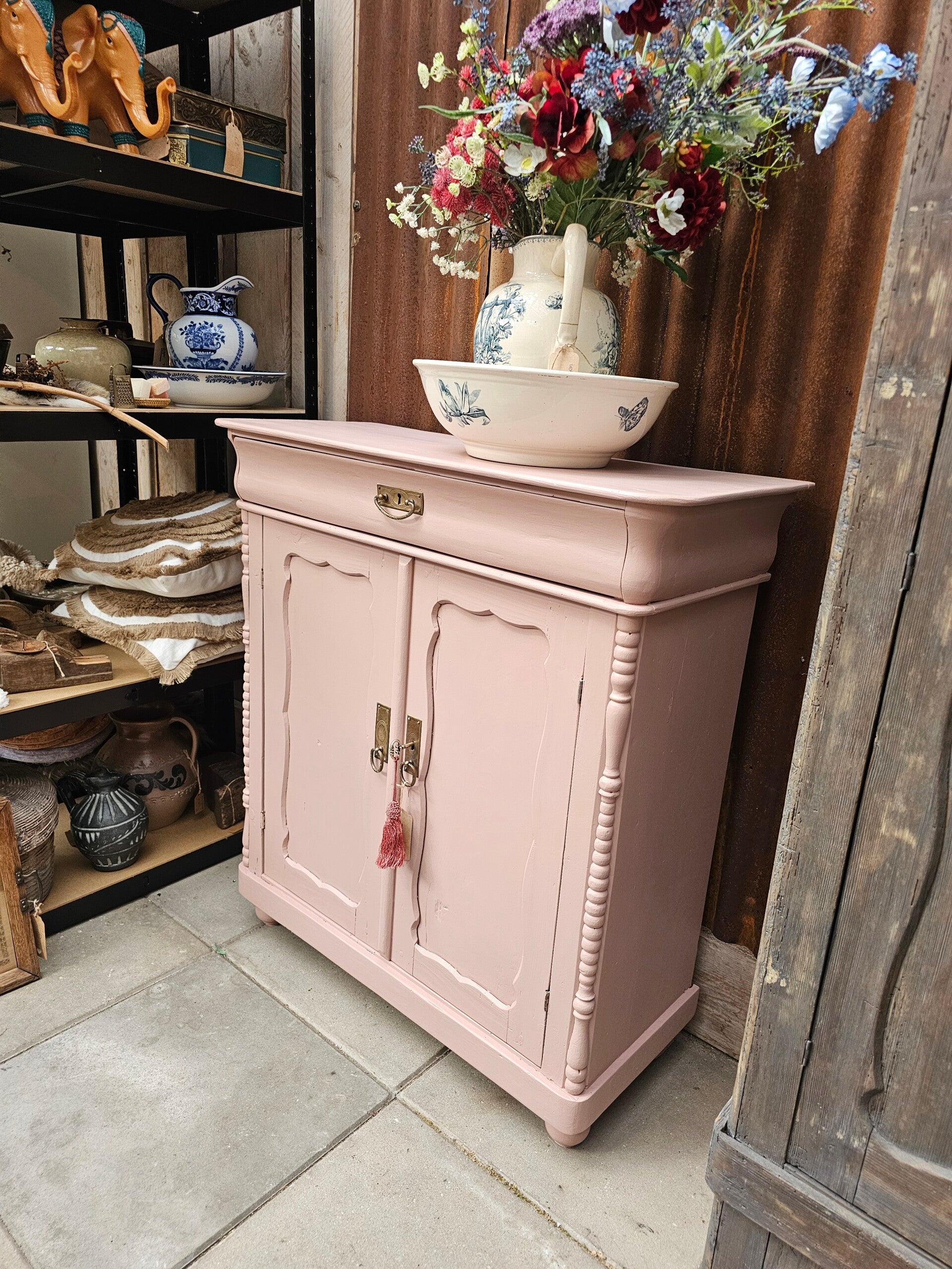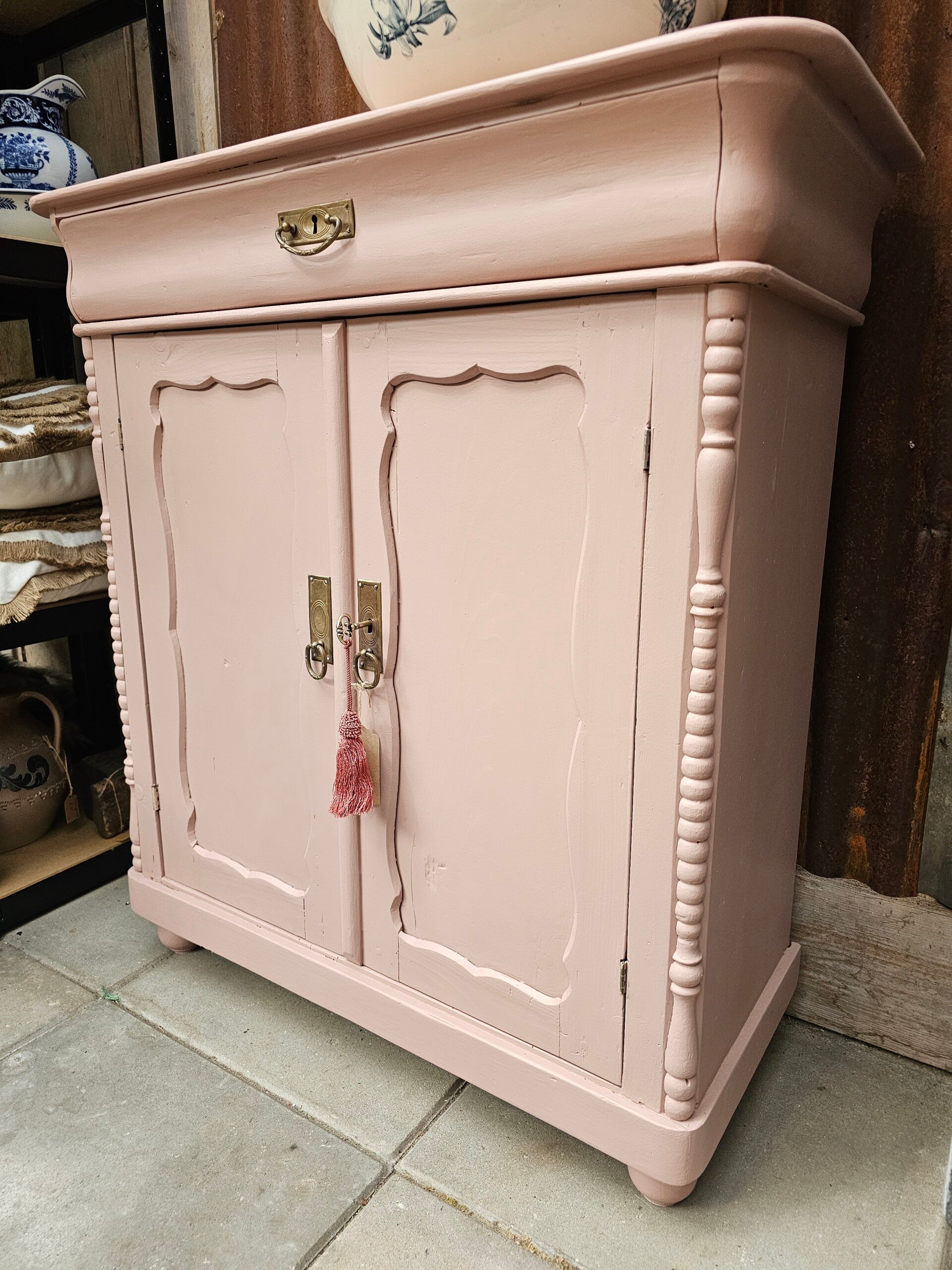 πΈ Biedermeier Dressoir / Wandkast – Roze met Zandkleurige Binnenkant πΈ