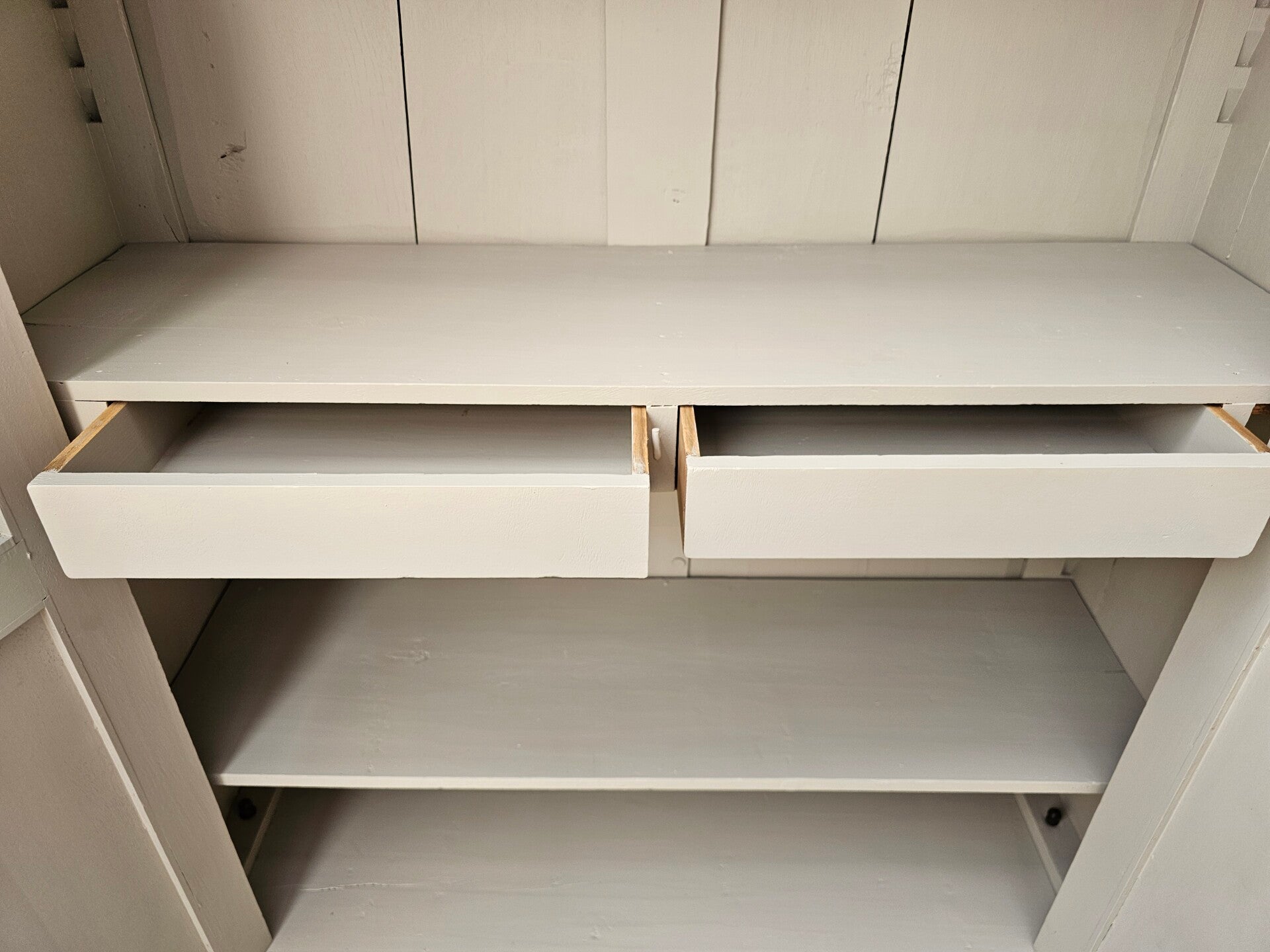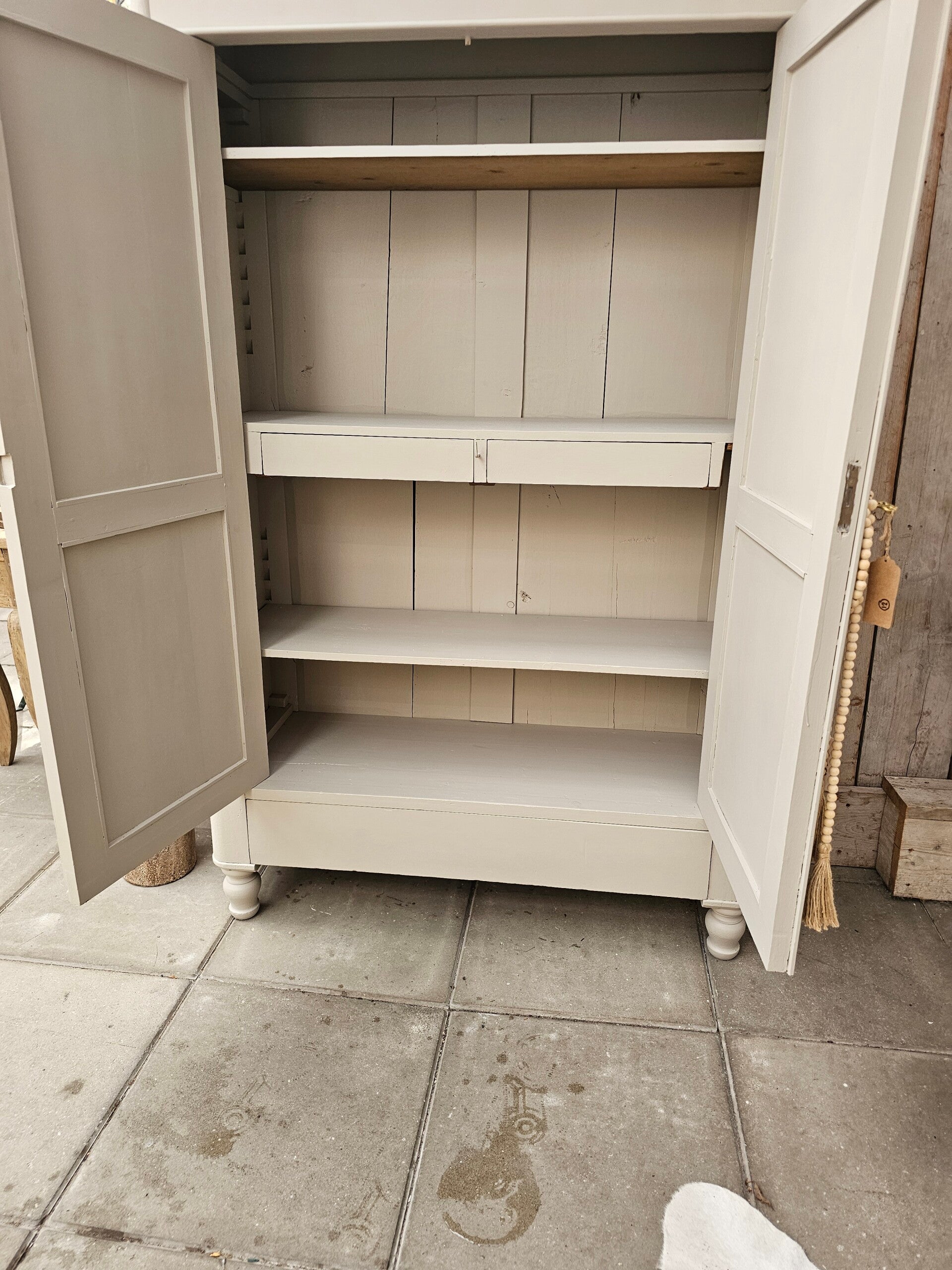 De kast is demontabel, wat het transport vergemakkelijkt, en verkeert in mooie staat.