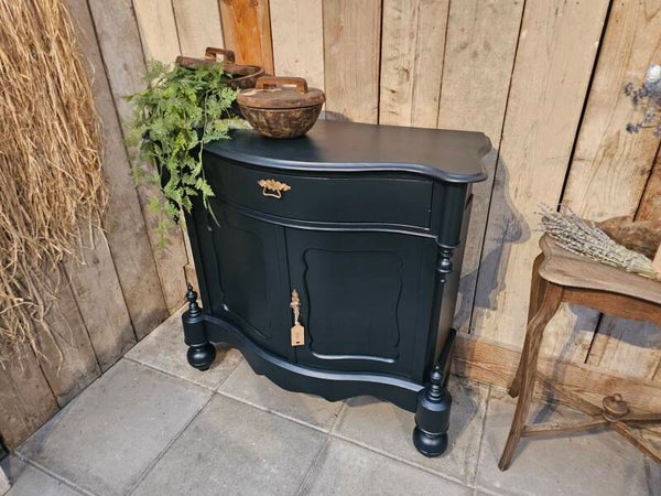 Het meubel is geschilderd in een bijzondere bluish black kleur: een diepe, bijna zwarte tint met een subtiele blauwe ondertoon. Afhankelijk van het licht verandert de uitstraling – van stoer en modern tot warm en klassiek.