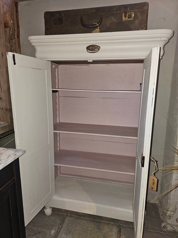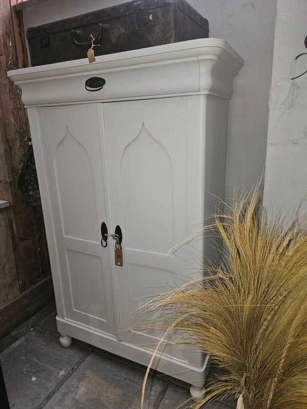 Op zoek naar een kast met karakter? Deze Biedermeier meidenkast combineert tijdloze elegantie met een vleugje speelsheid: een zachte cashmere buitenkant en een verrassend rose Perfect om je kleding, dekens of geheimen stijlvol op te bergen!