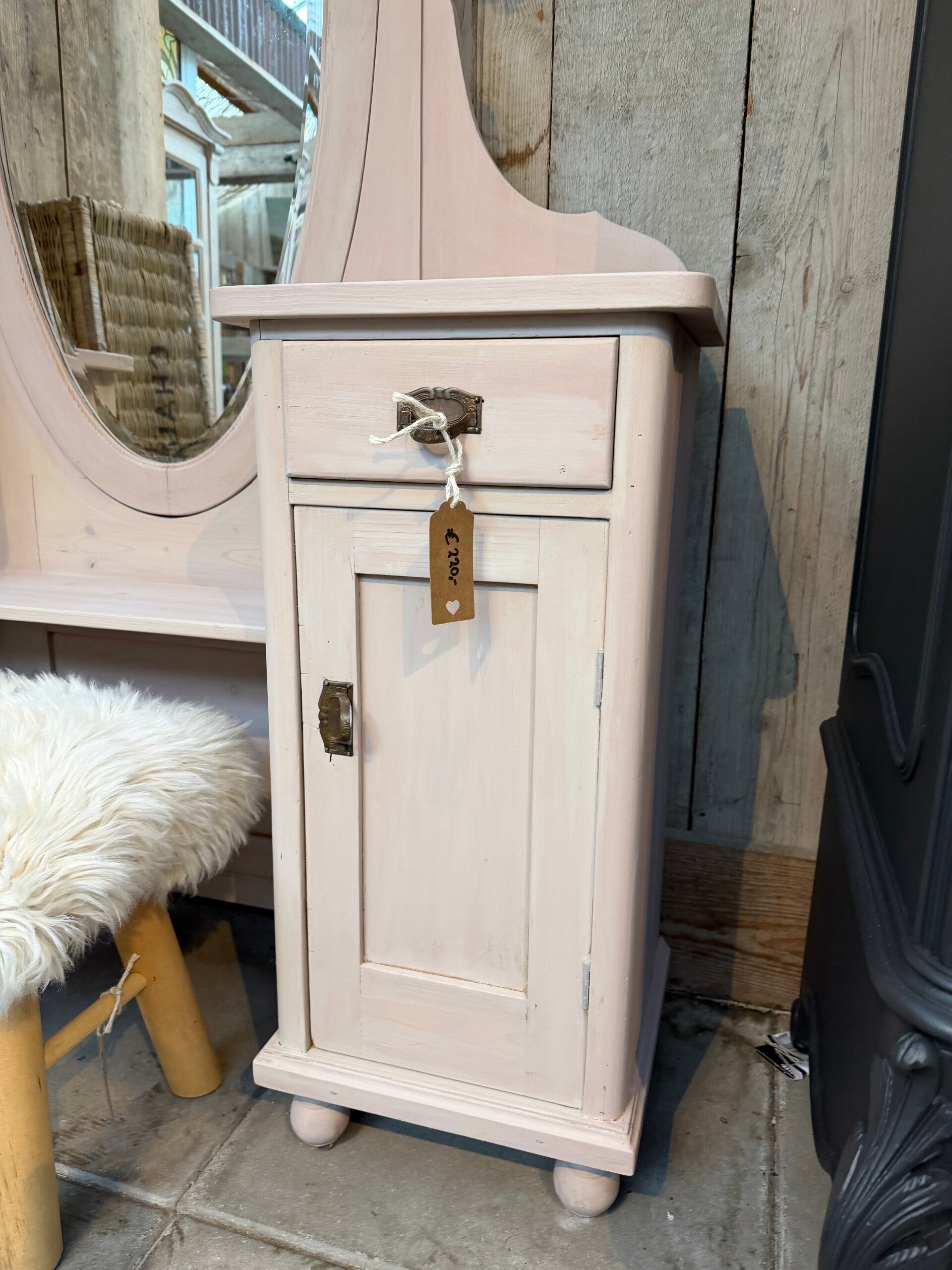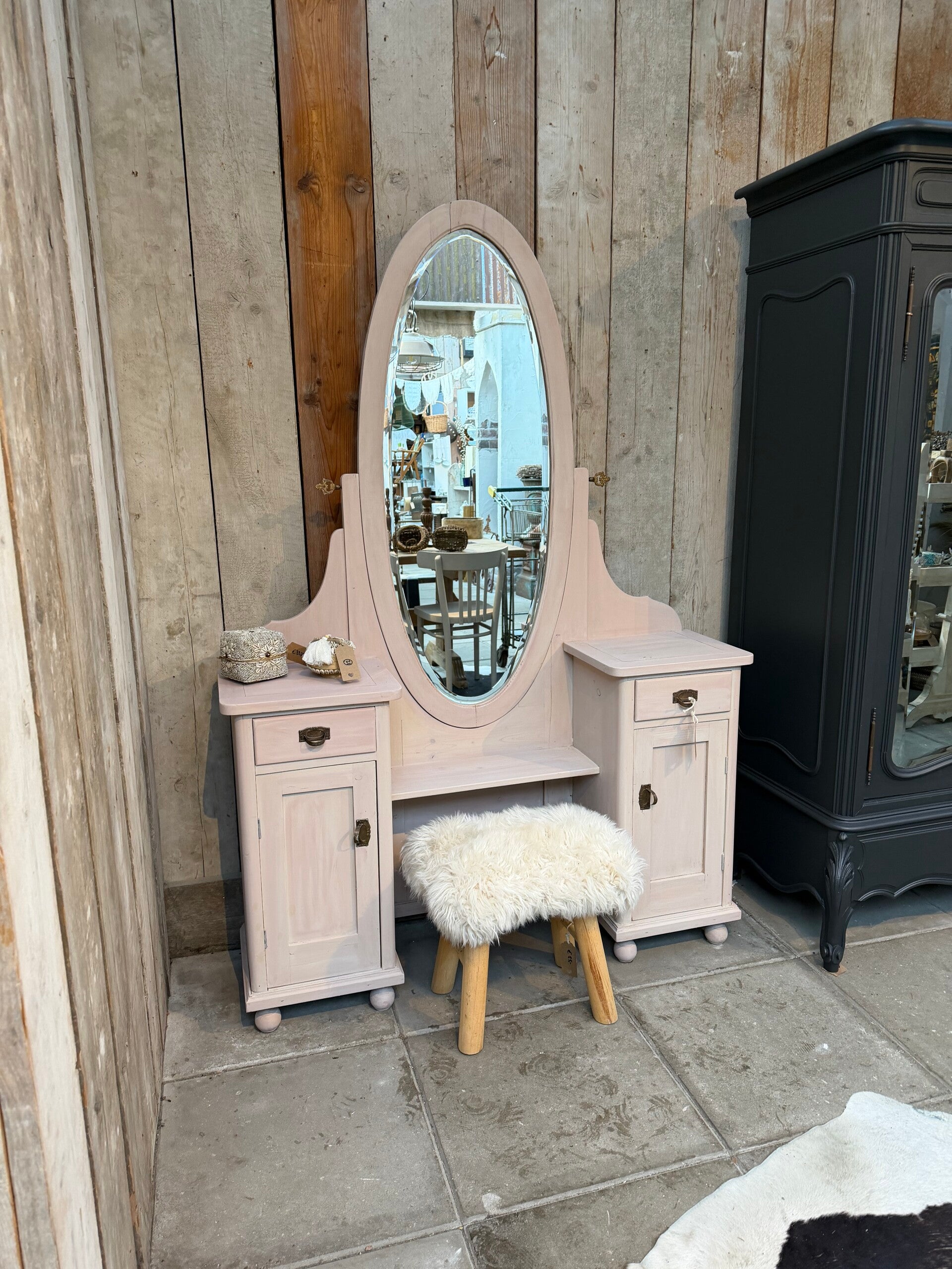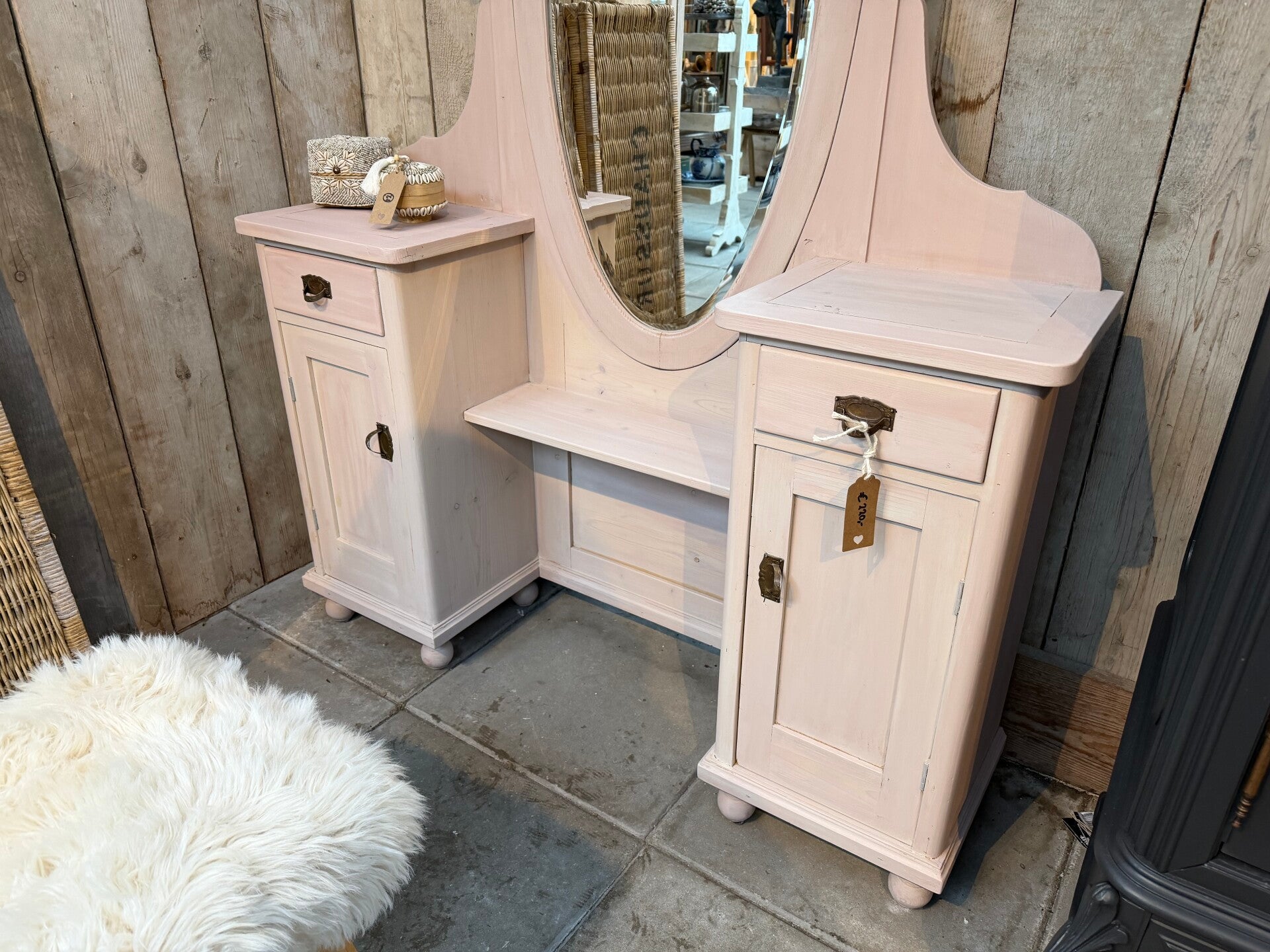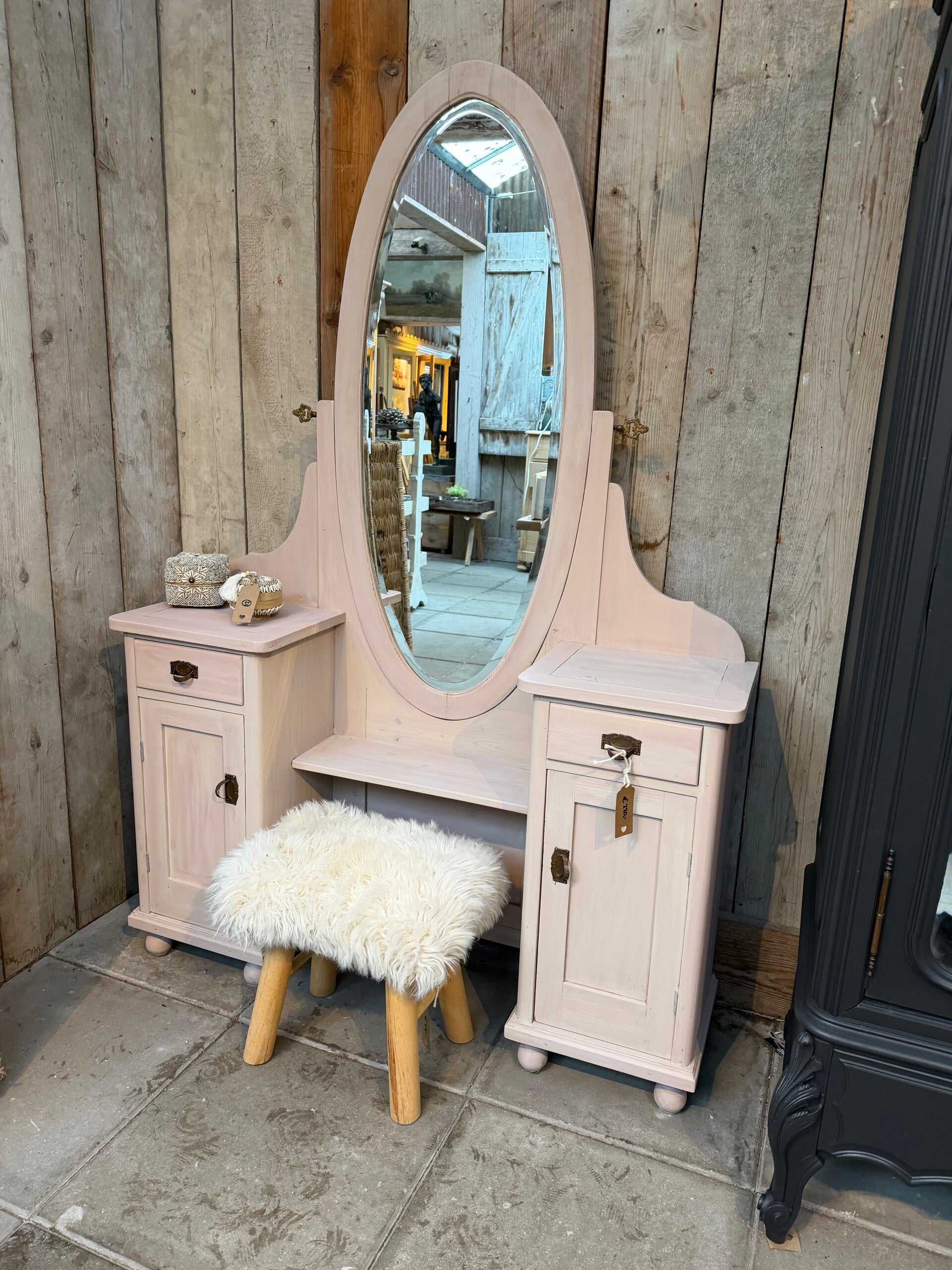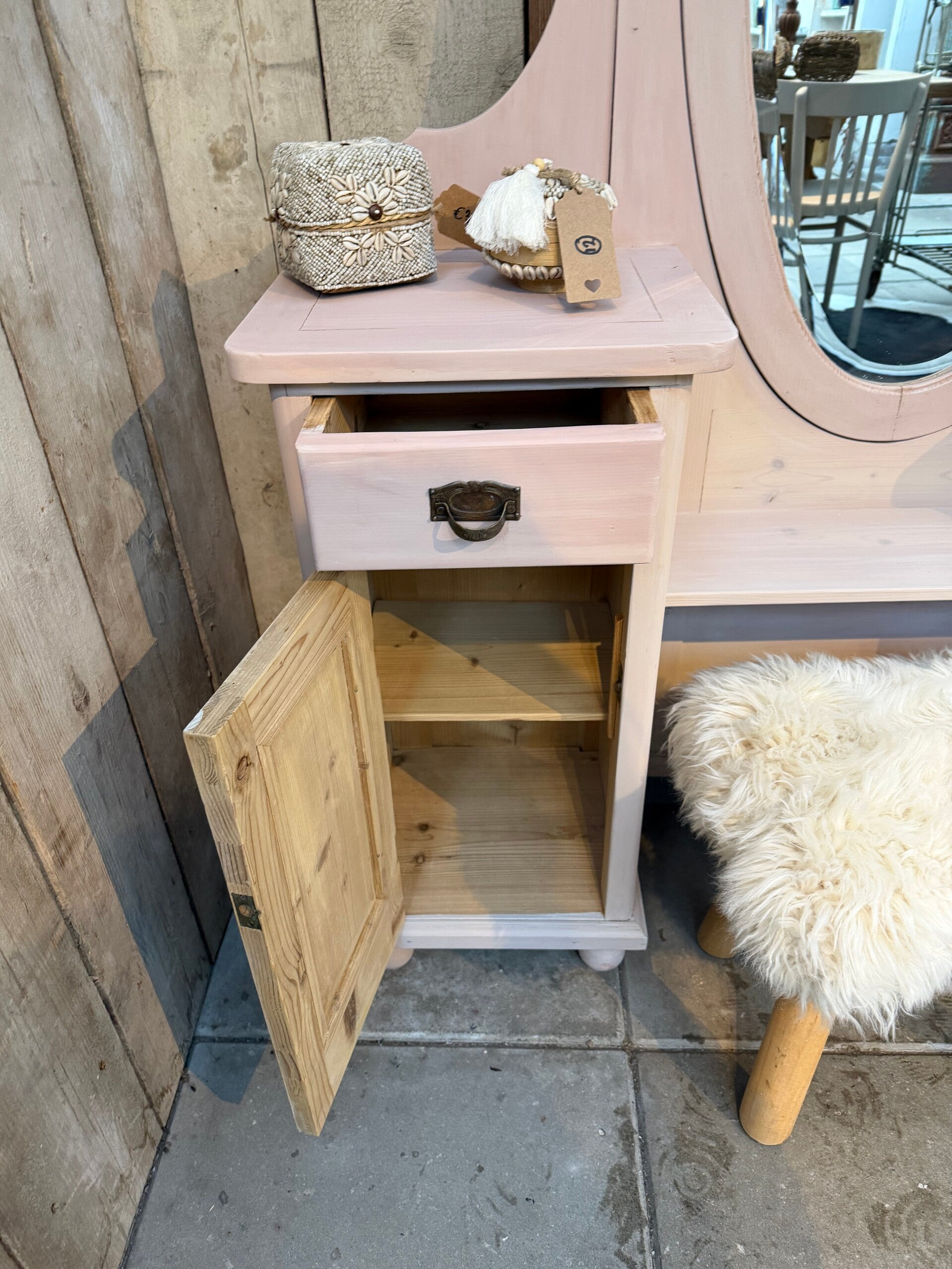 πΈ Landelijke brocante kaptafel – zacht roze – uniek item
